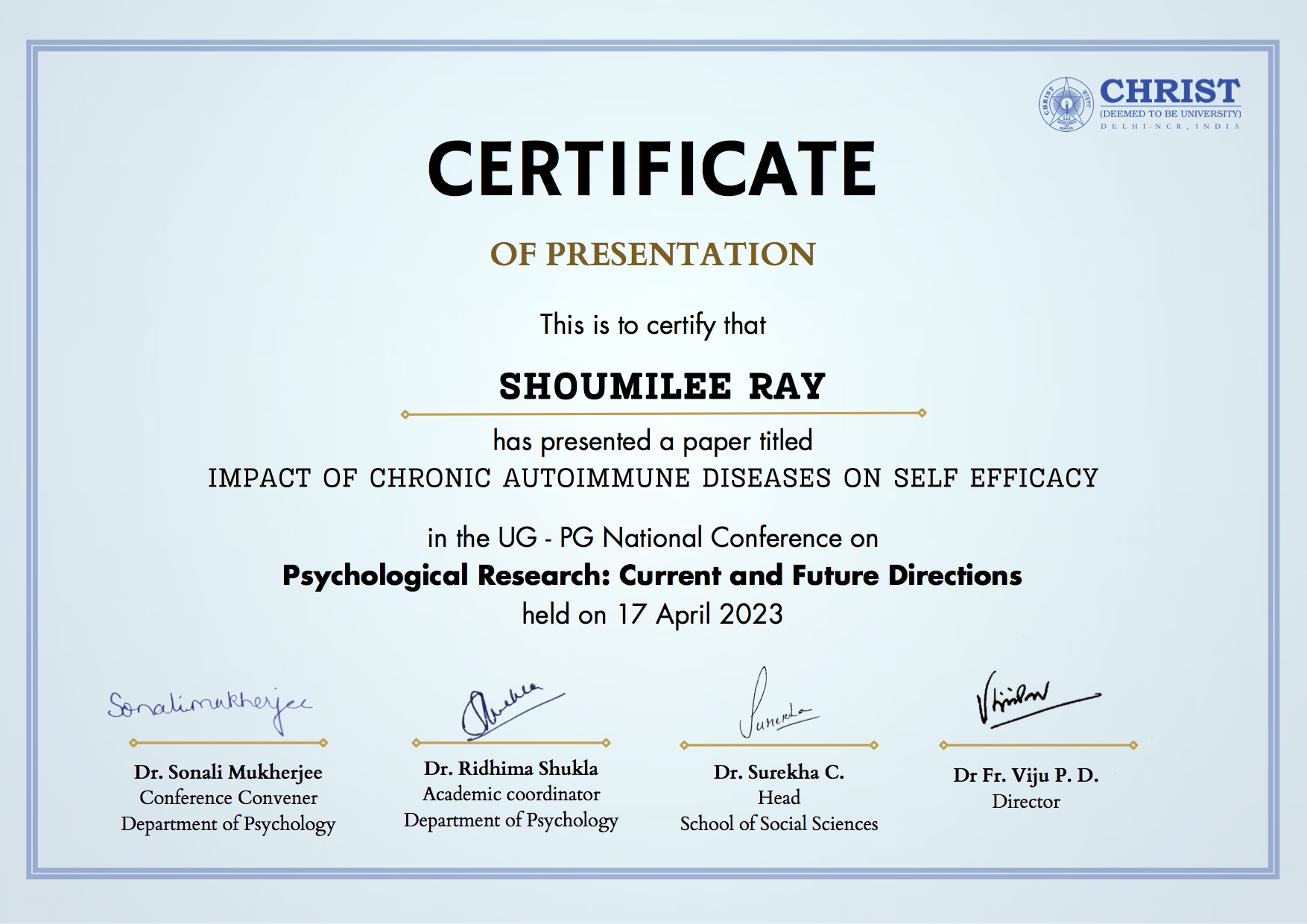 Presented at UG & PG National Conference on Psychological Research: Current and Future Directions that took place